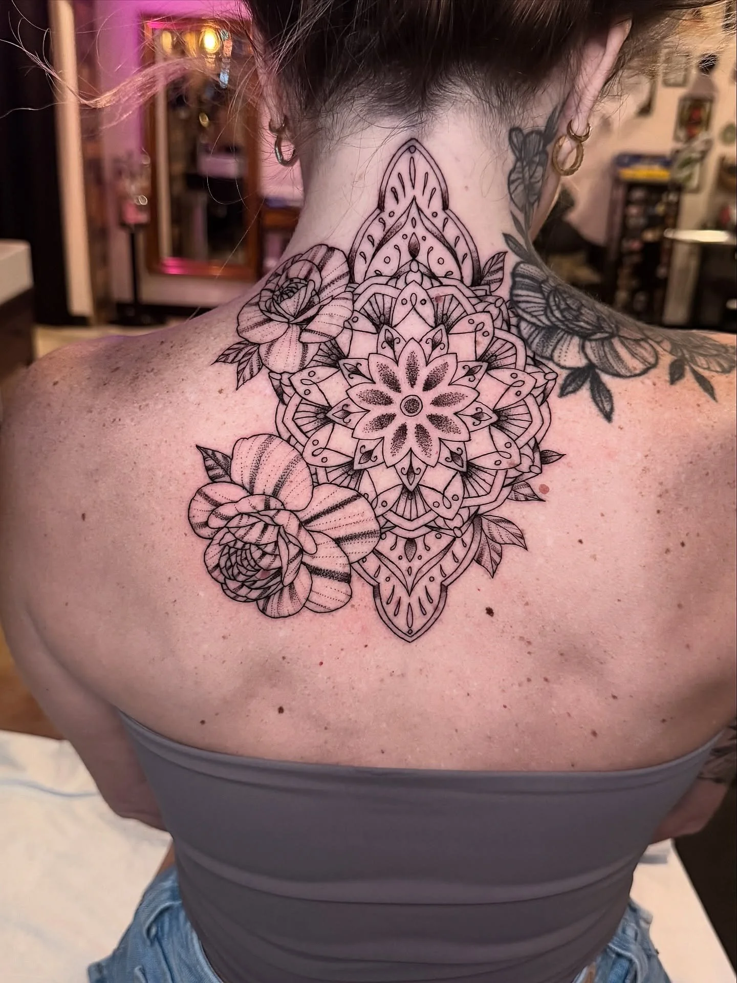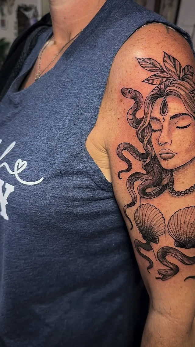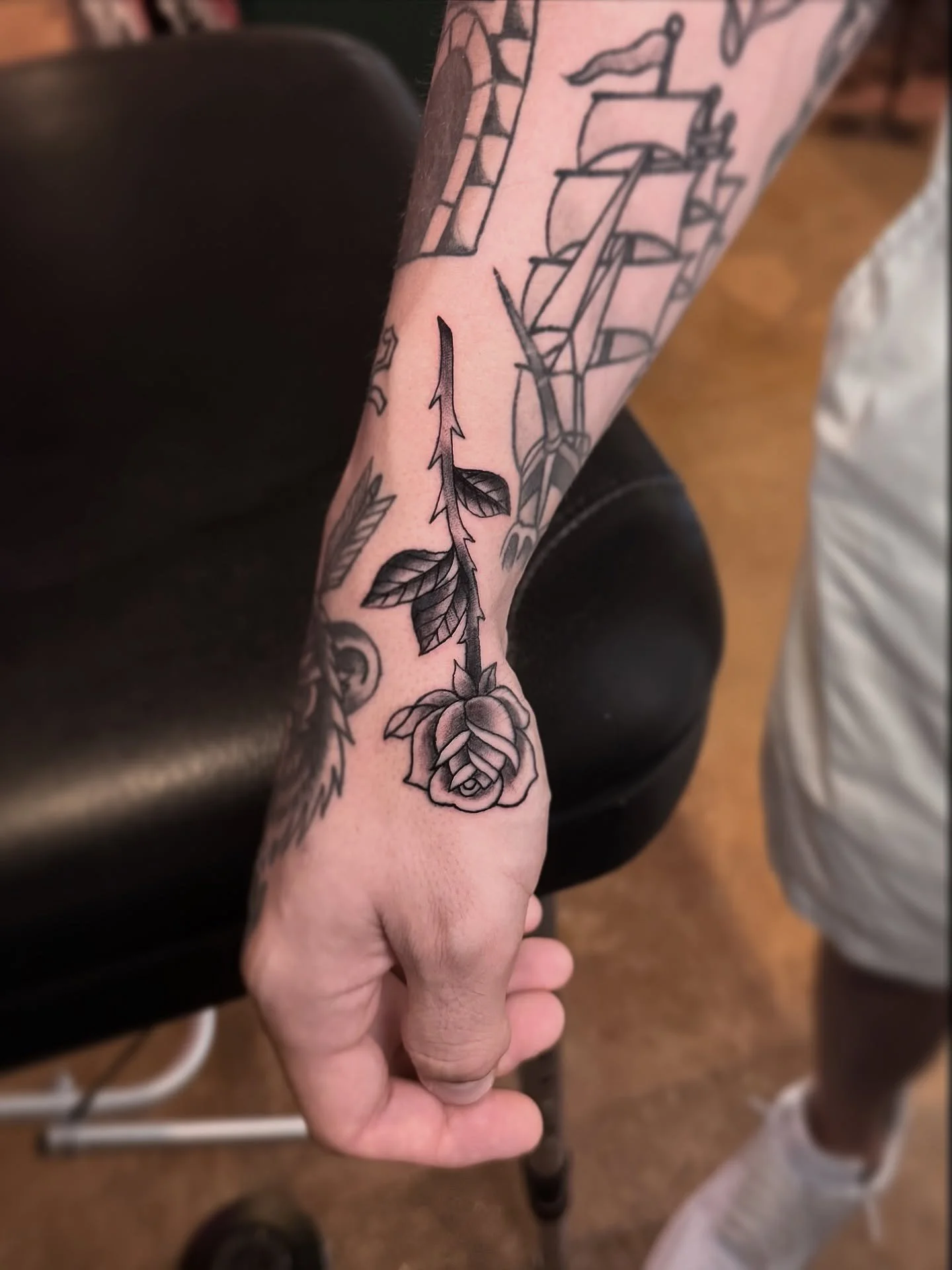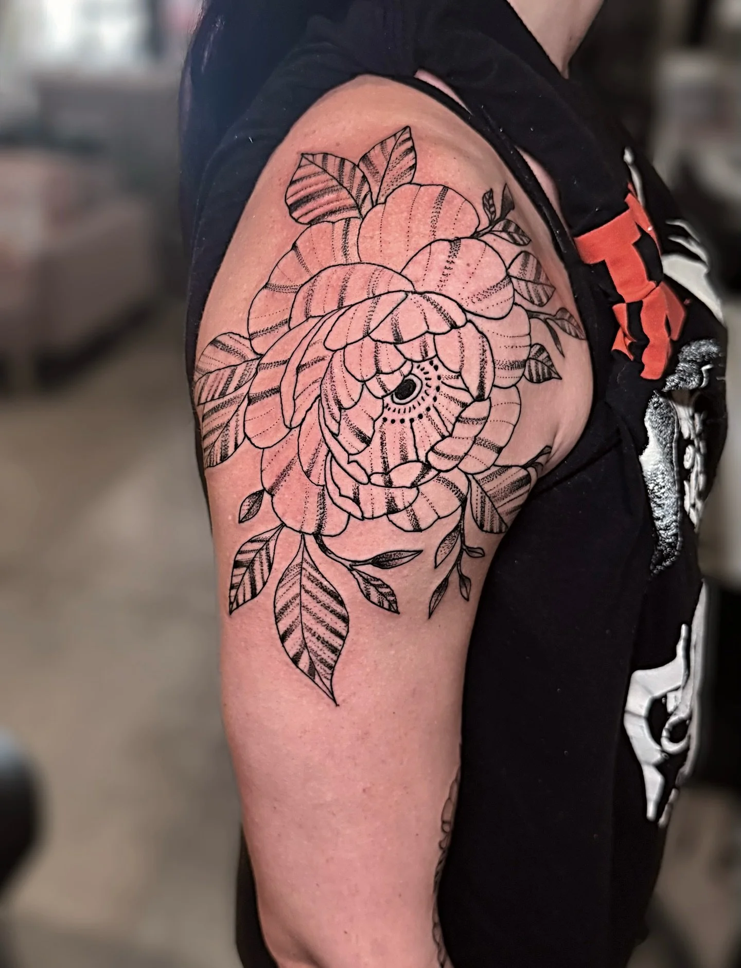My style: I thrive on creating designs that are expressive, timeless, and tailored to you—whether that’s a bold blackwork piece, fine-line geometry, or something floral with depth and flow.